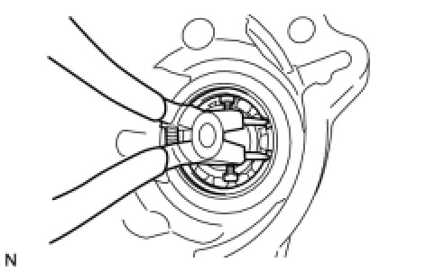 (e) Using a feeler gauge, measure the clearance between the snap ring and the race.