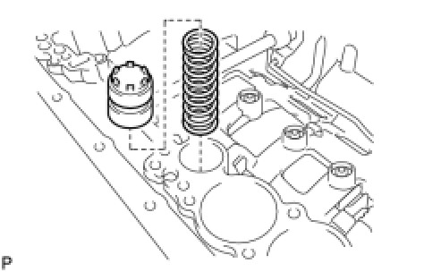 (b) Install the spring and the accumulator piston to the hole.