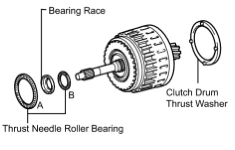 (b) Coat the race and washer with petroleum jelly and install them onto the clutch drum and input shaft assembly.