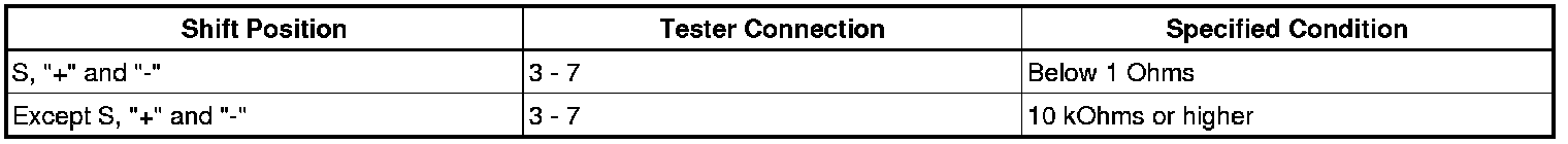If the resistance value is not as specified, replace the transmission control switch.
