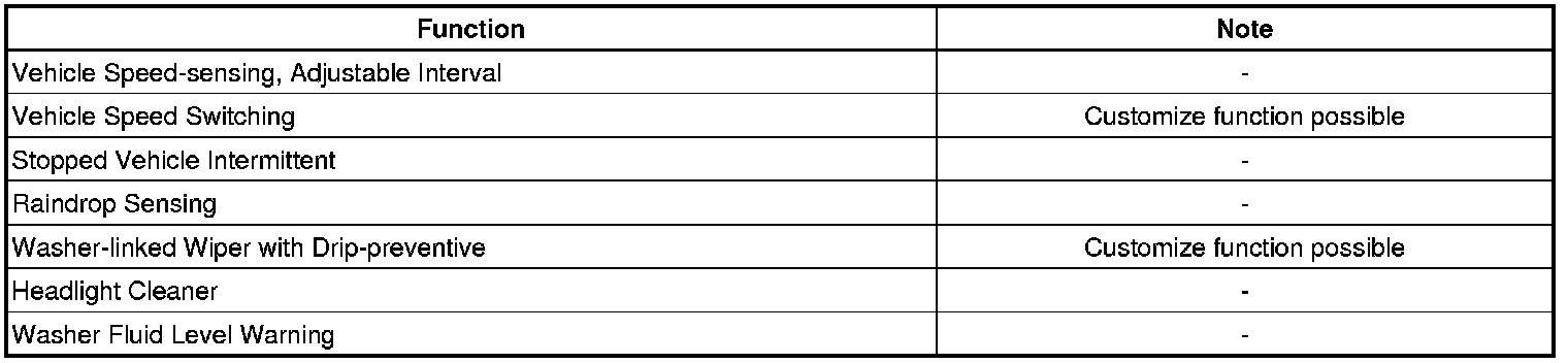 (a) This function controls the intermittent interval of the wipers according to the vehicle speed when the wiper switch is in the INT position.