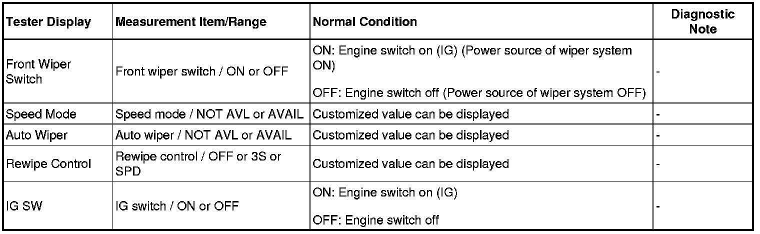 WIPER AND WASHER SYSTEM: DATA LIST / ACTIVE TEST