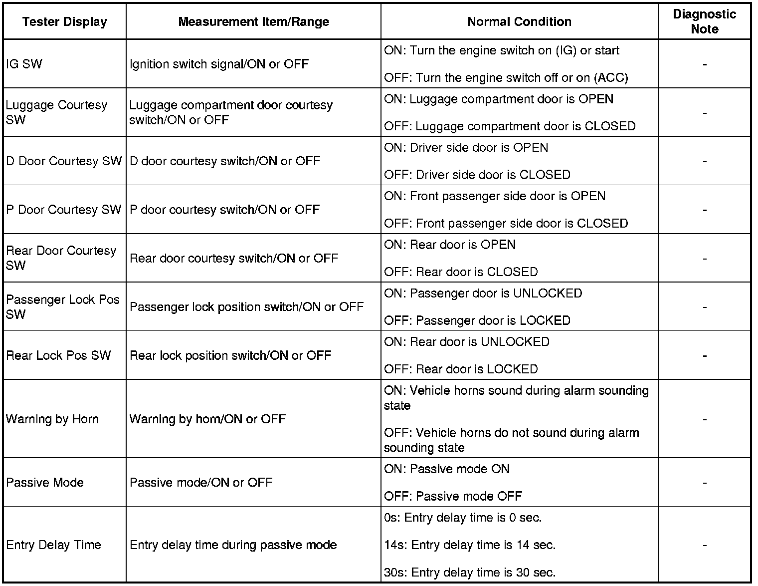 THEFT DETERRENT: THEFT DETERRENT SYSTEM: DATA LIST / ACTIVE TEST