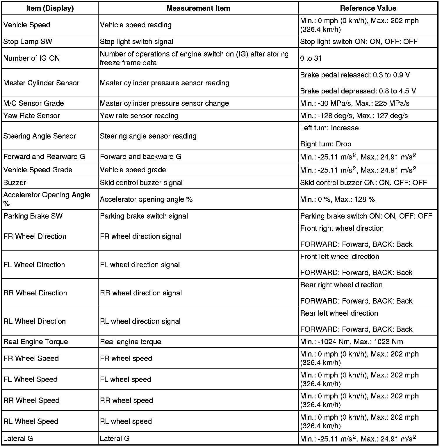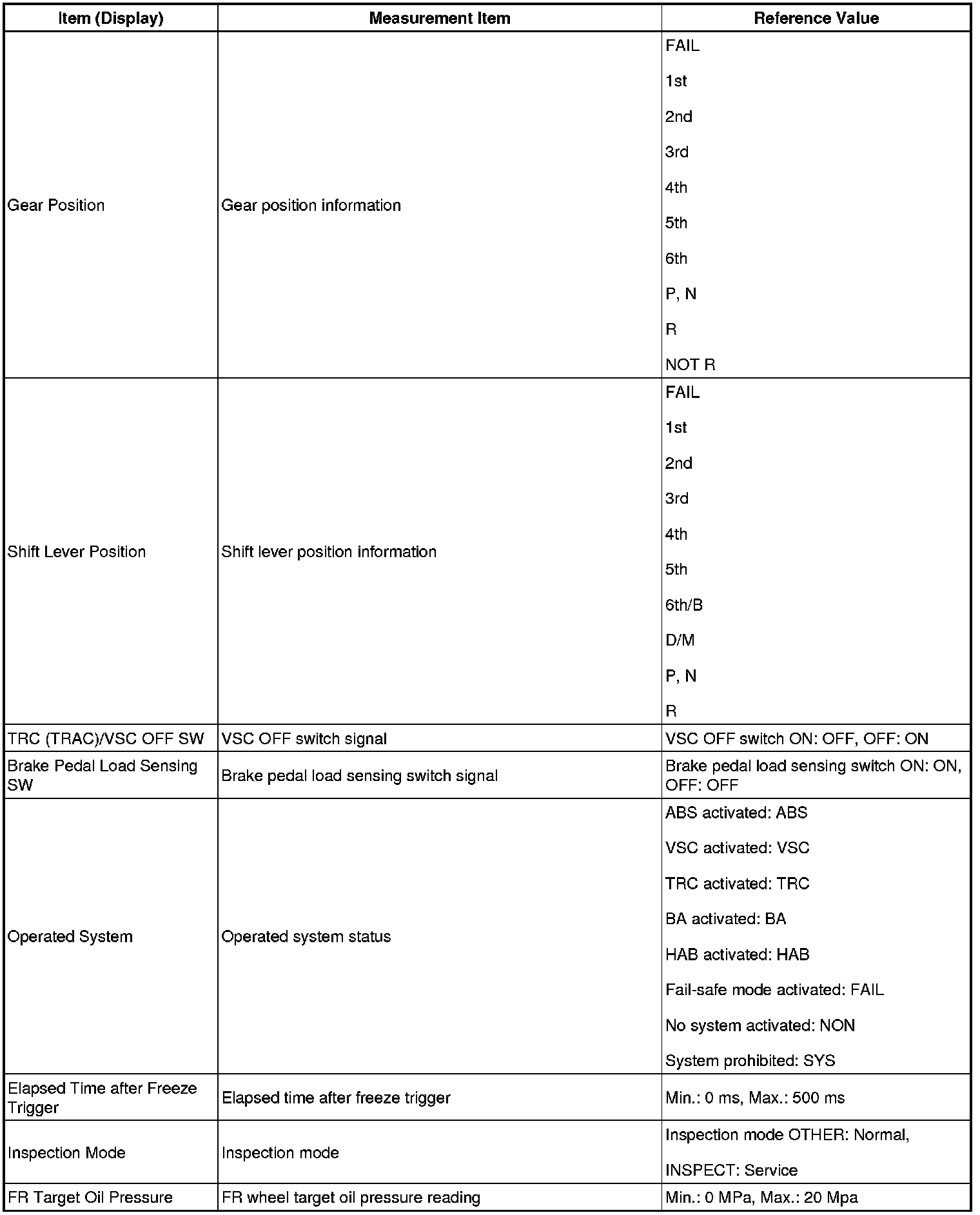 - Freeze Frame Data at the time the ABS operates: