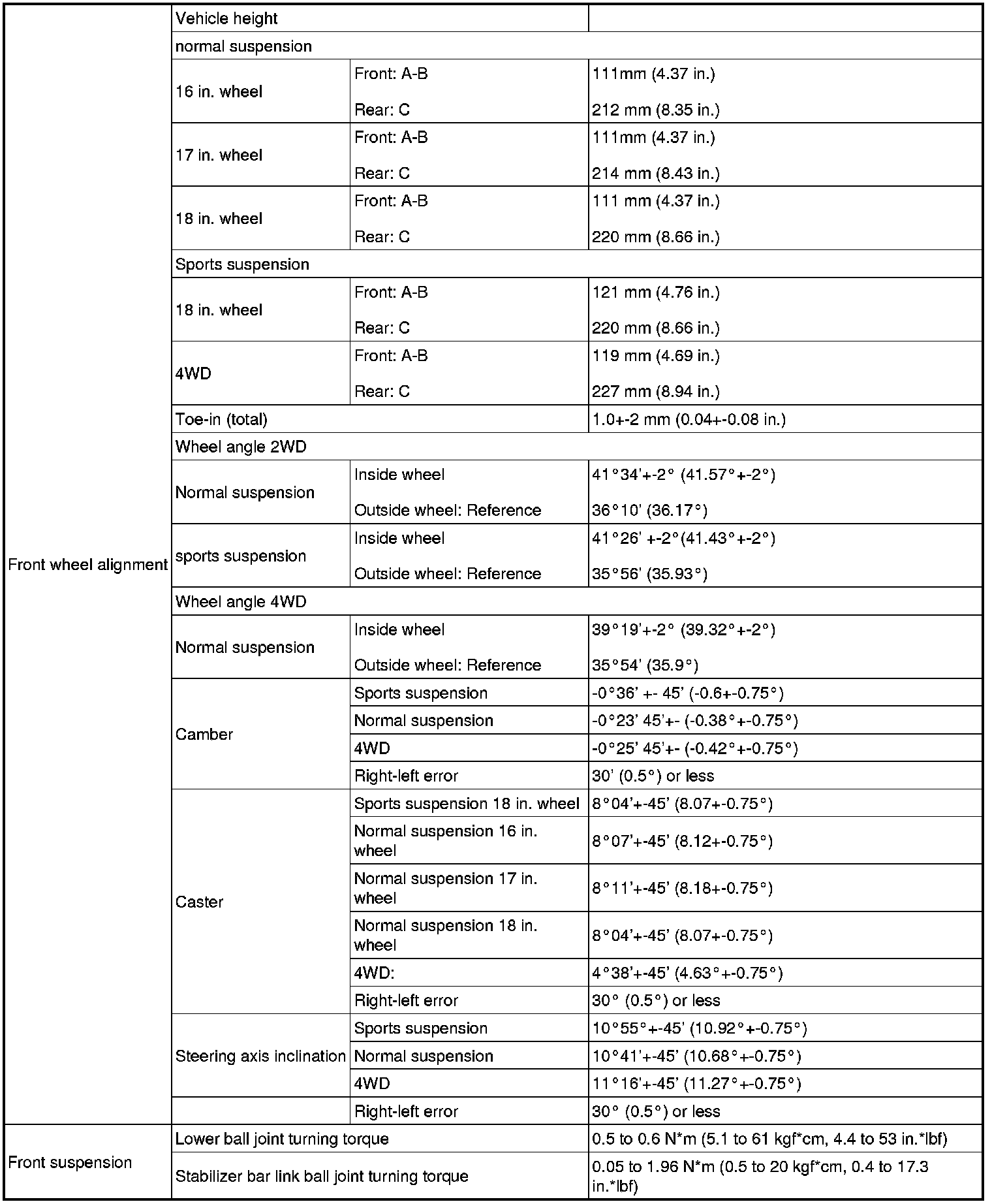 SERVICE SPECIFICATIONS: SUSPENSION: SERVICE DATA