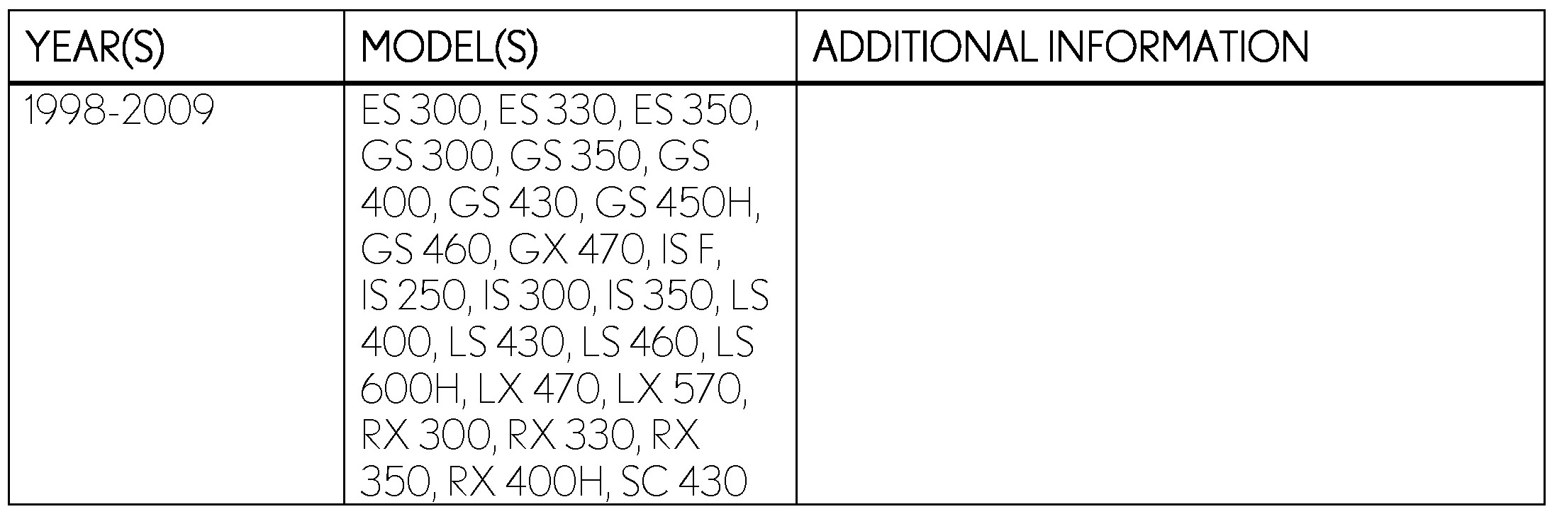 '98 - '09 Lexus
