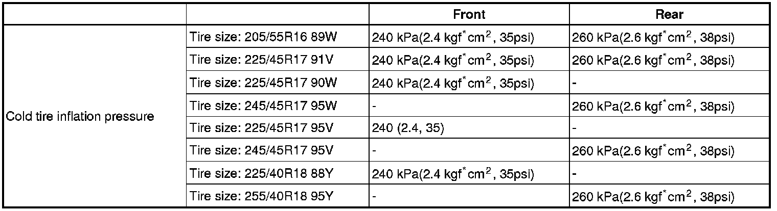 SERVICE SPECIFICATIONS: TIRE AND WHEEL: SERVICE DATA
