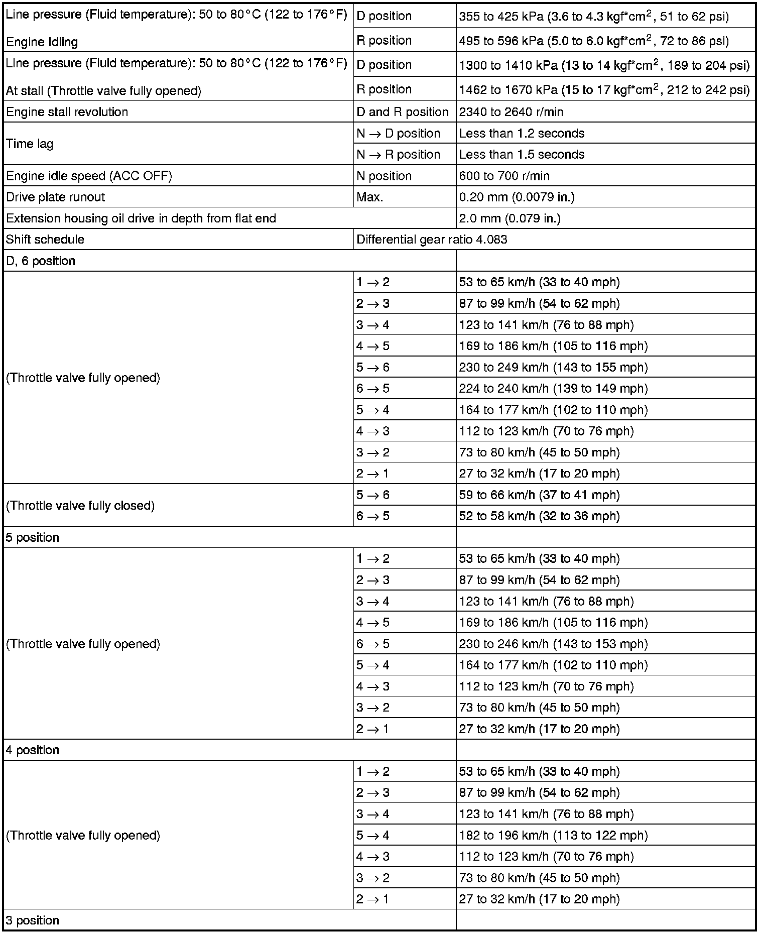 - All shift point values indicated in the above tables are actual values. Therefore, if checking a shift point with a chassis dynamometer, keep in mind that there is a range of error in the chassis dynamometer indication.