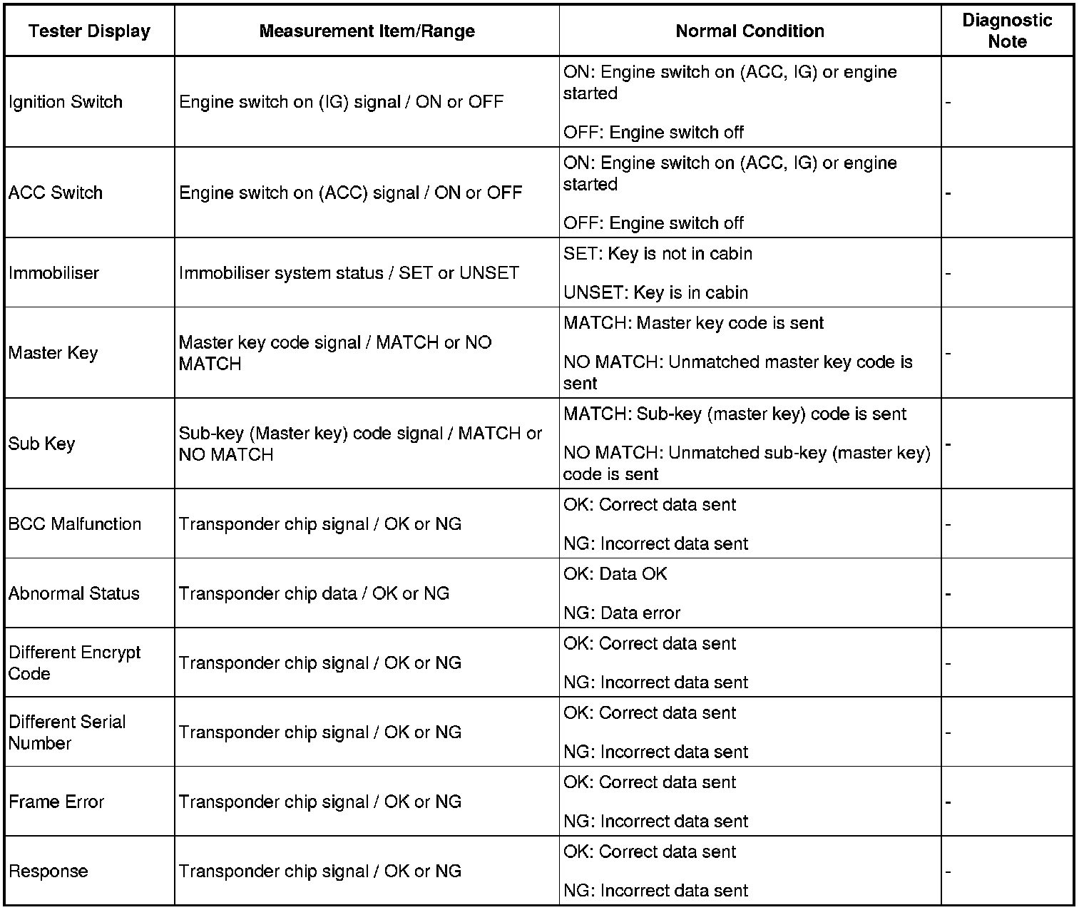 THEFT DETERRENT / KEYLESS ENTRY: ENGINE IMMOBILISER SYSTEM: DATA LIST / ACTIVE TEST
