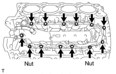(b) Install the oil pan sub-assembly with the 14 bolts and 2 nuts.
