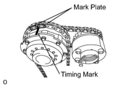 (b) Align the No. 1 chain's orange mark plate with the crankshaft timing sprocket's timing mark, and attach the chain to the gear as shown in the illustration.