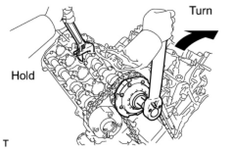 (1) Using a wrench, hold the hexagonal portion of the No. 1 camshaft.