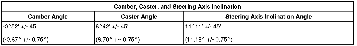 SPECIFICATIONS: ALIGNMENT / HANDLING DIAGNOSIS: SERVICE DATA