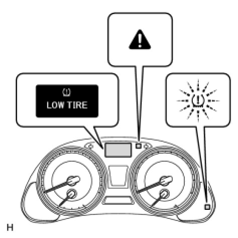 (a) When the tire pressure warning light, and master warning light come on and "LOW TIRE" appears on the multi-information display, check the tire pressure and adjust them to the specified value. (The tire pressure warning light will come on after blinking for 1 minute if there is a malfunction in the tire pressure warning light circuit.)