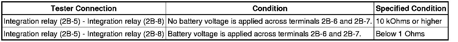 If the resistance is not as specified, replace the integration relay.