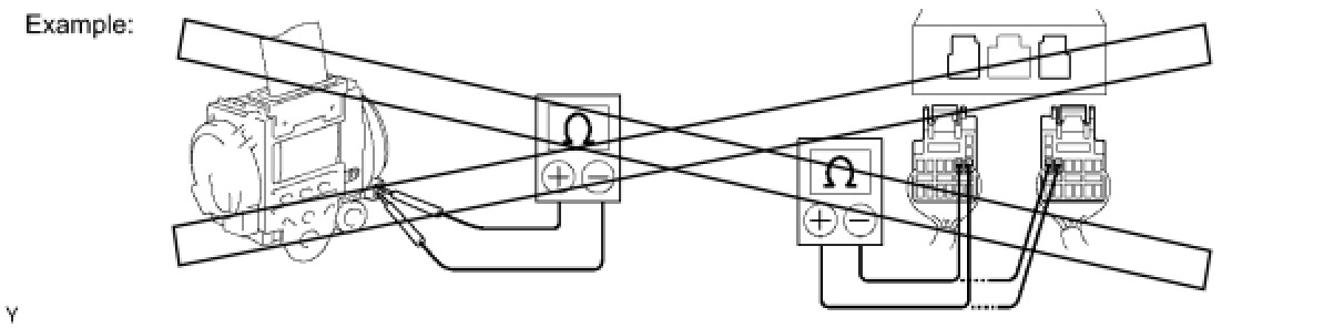 (2) Never measure the resistance of the airbag squib. This may cause the airbag to deploy, which could cause serious injury.