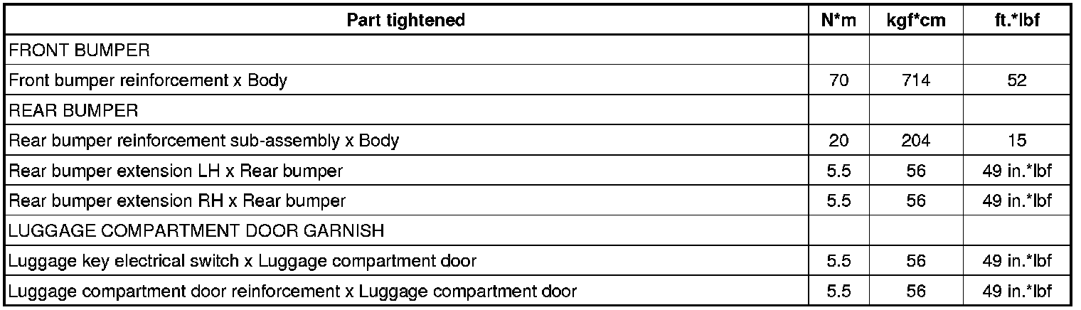 SPECIFICATIONS: EXTERIOR PANELS / TRIM: TORQUE SPECIFICATIONS