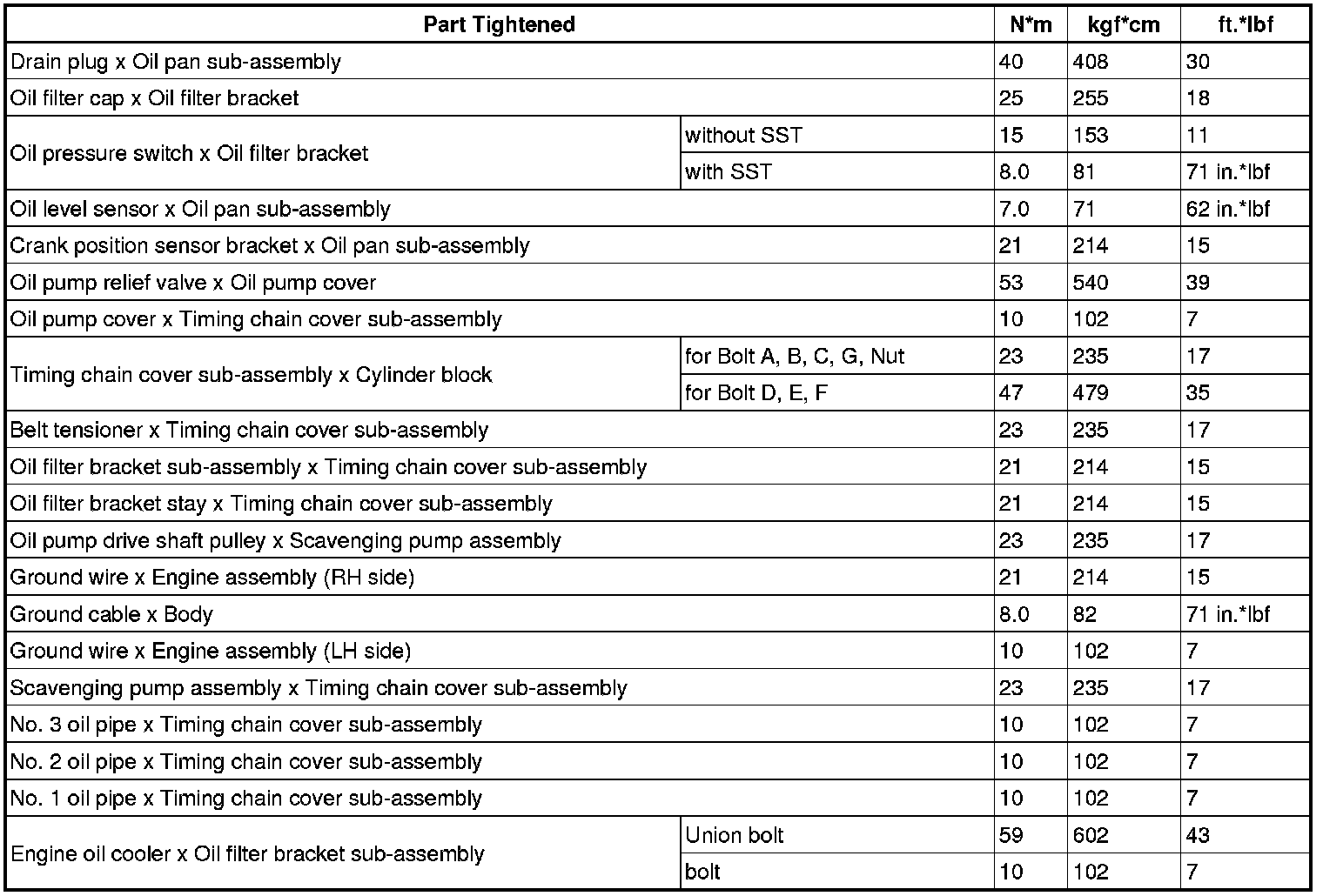 SPECIFICATIONS: 2UR-GSE LUBRICATION: TORQUE SPECIFICATIONS