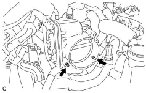Set the throttle body assembly and new gasket with the 2 stud bolts.