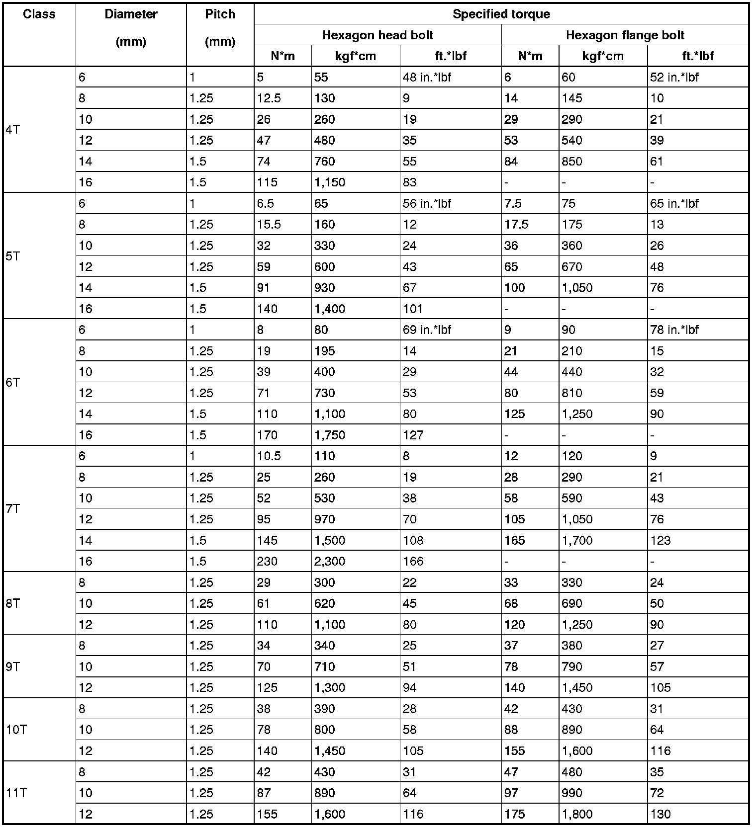 SPECIFICATIONS: STANDARD BOLT: SPECIFIED TORQUE FOR STANDARD BOLTS