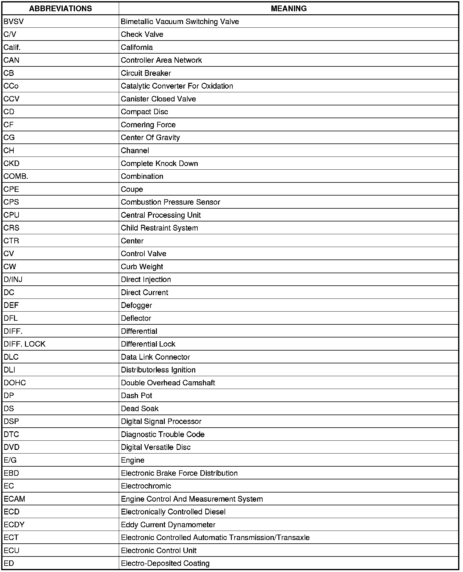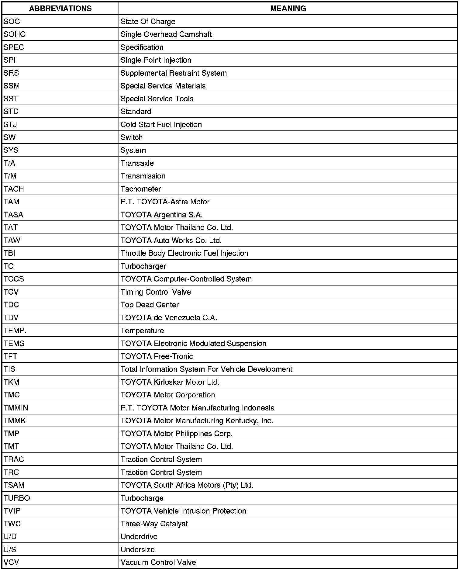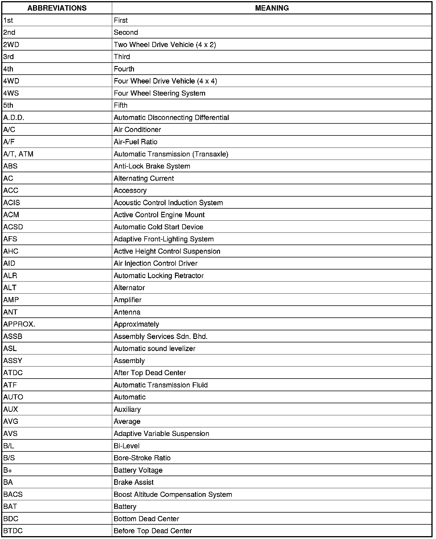 Terms - Abbreviations Used In Service Procedures