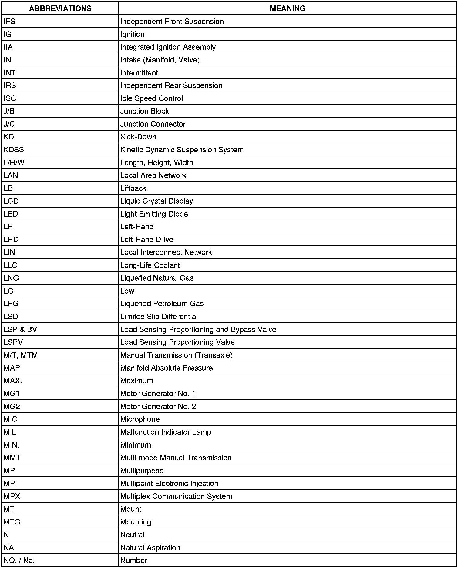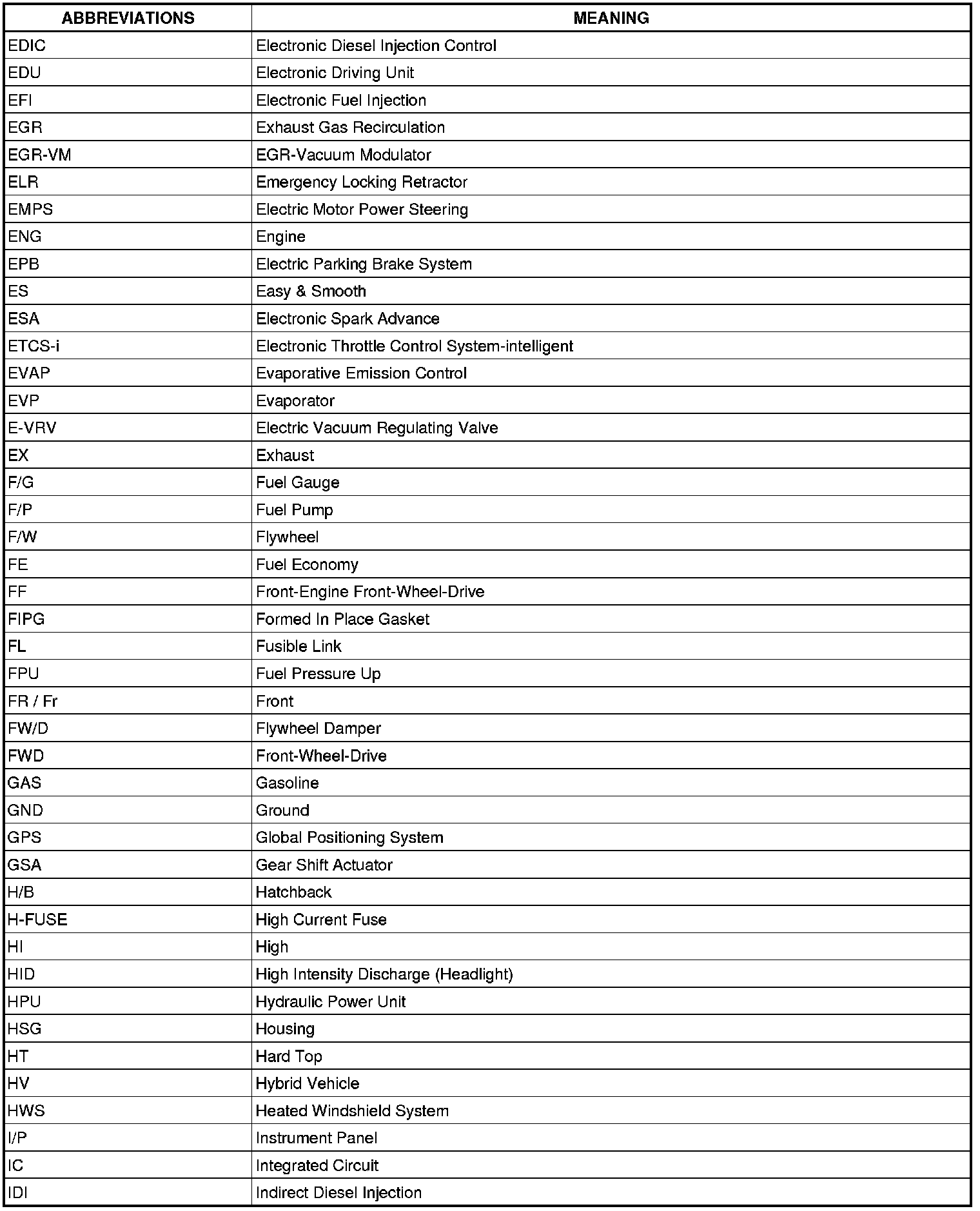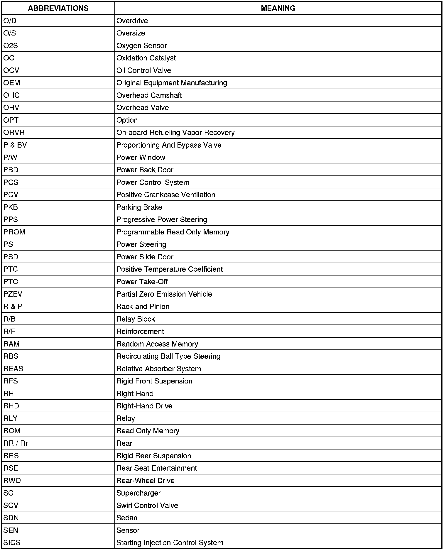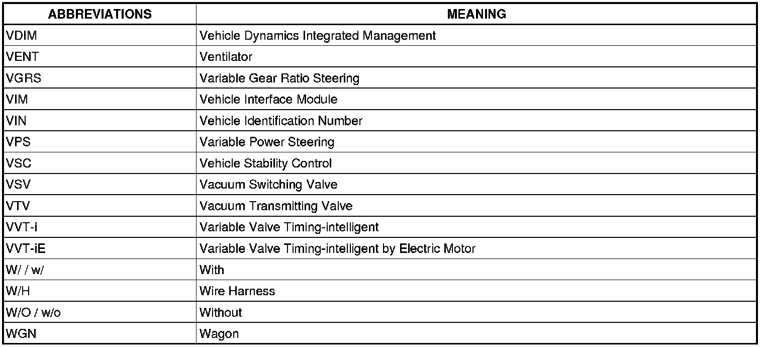 Terms - Abbreviations Used In Service Procedures