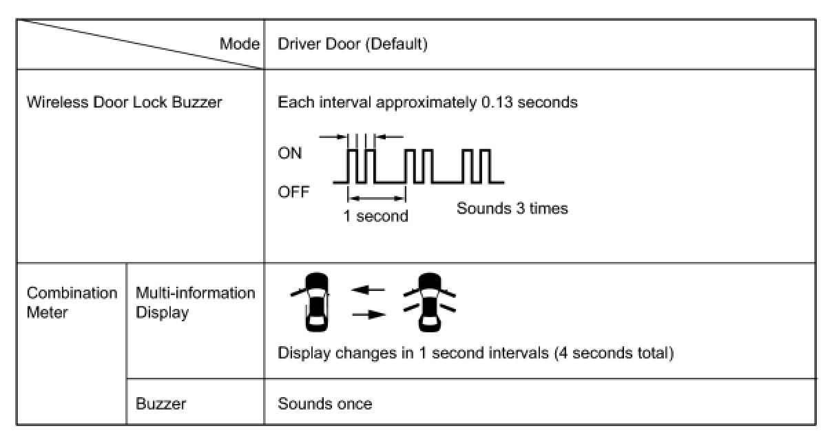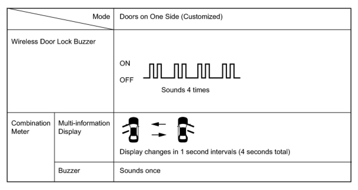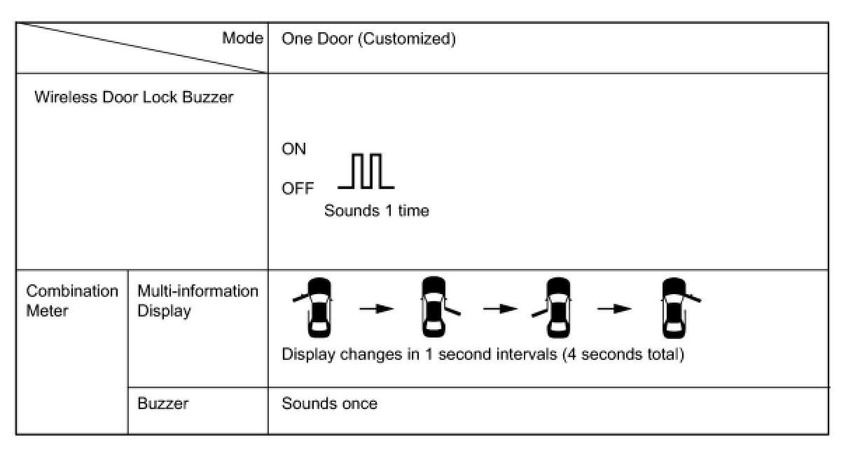 (c) The certification ECU sounds the wireless door lock buzzer and combination meter buzzer to inform the user that the mode has been switched.