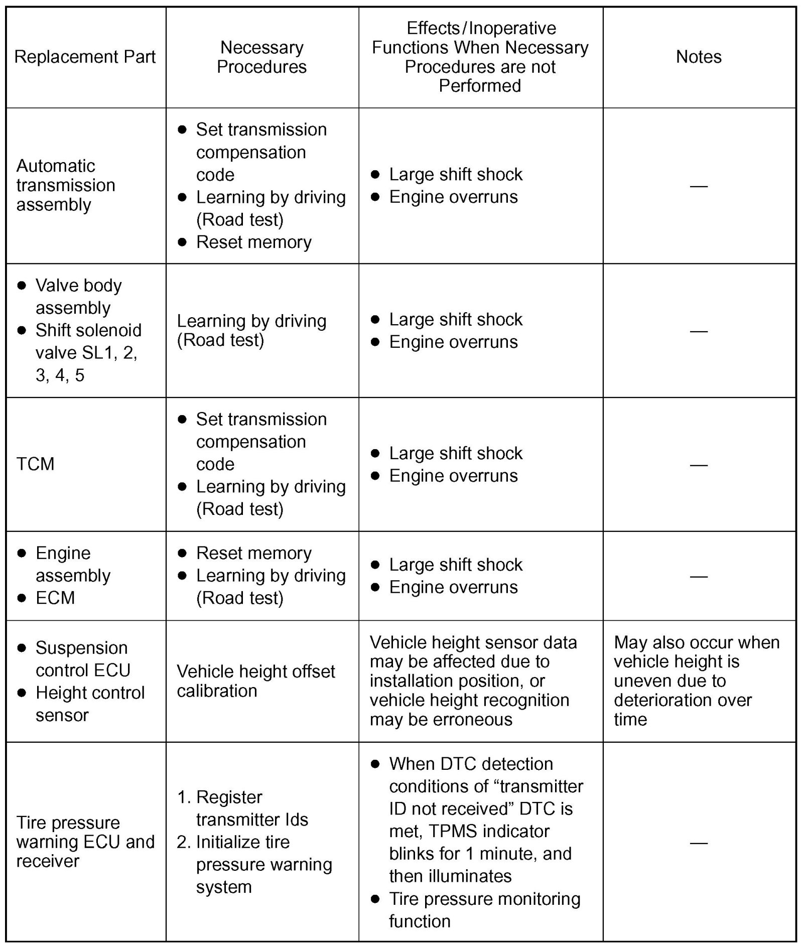 Procedures Necessary When ECU Or Other Parts Are Replaced