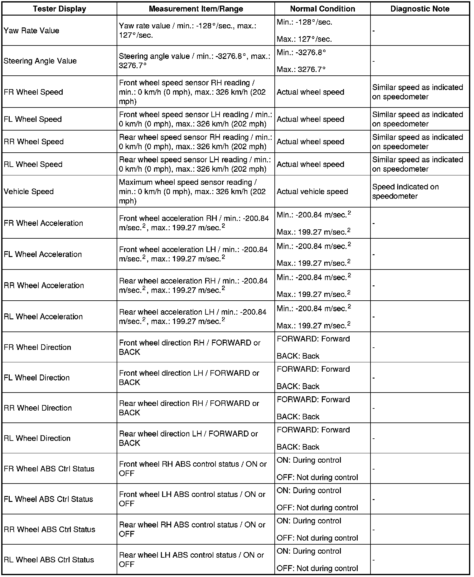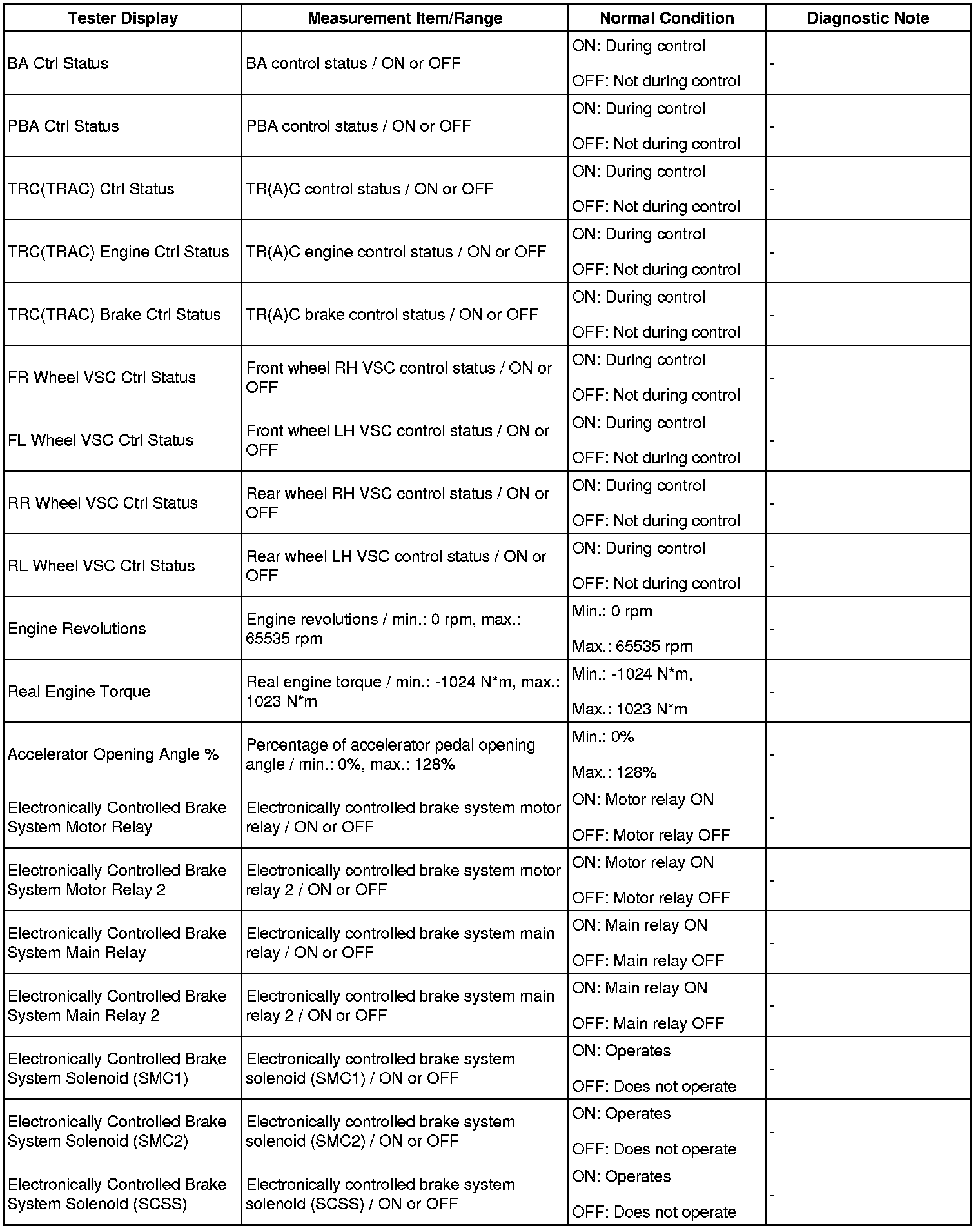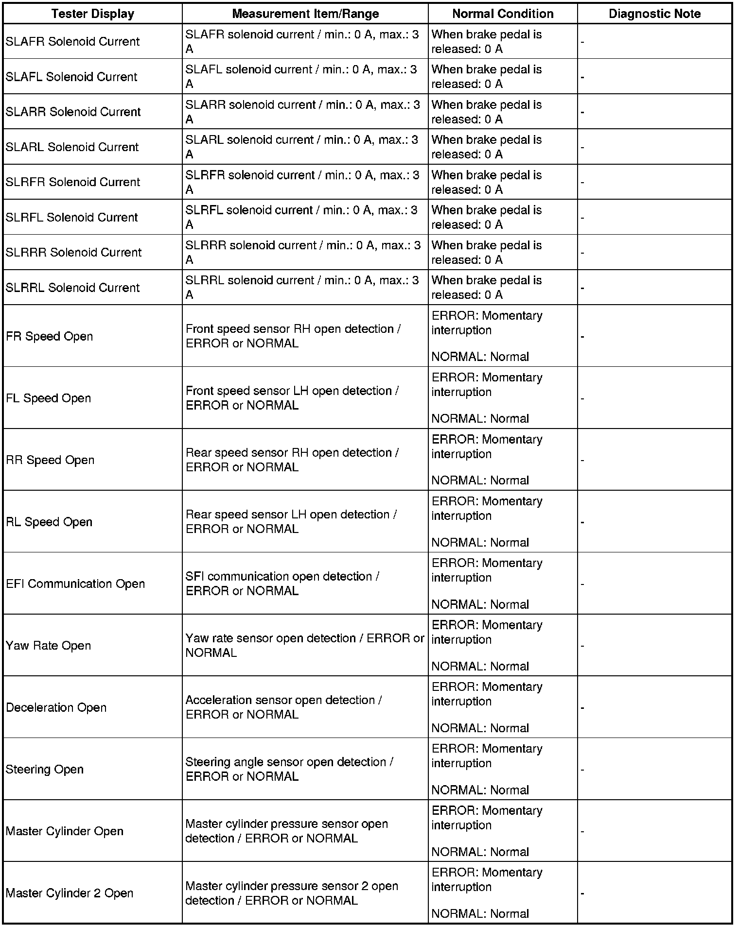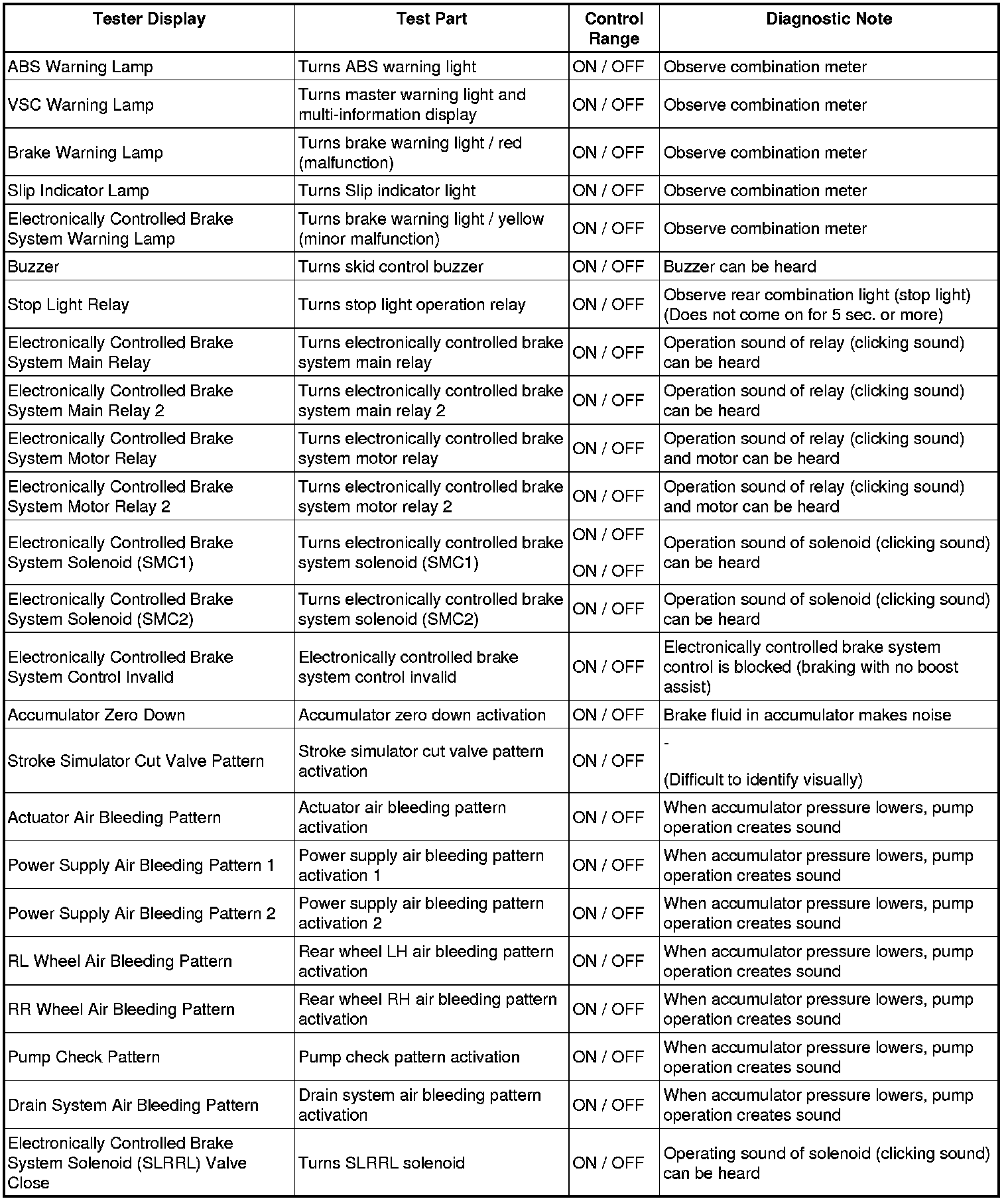 - The Active Tests of the ABS solenoid, ABS motor relay, ABS warning light and brake warning light / red (malfunction) are available when the vehicle is stopped.