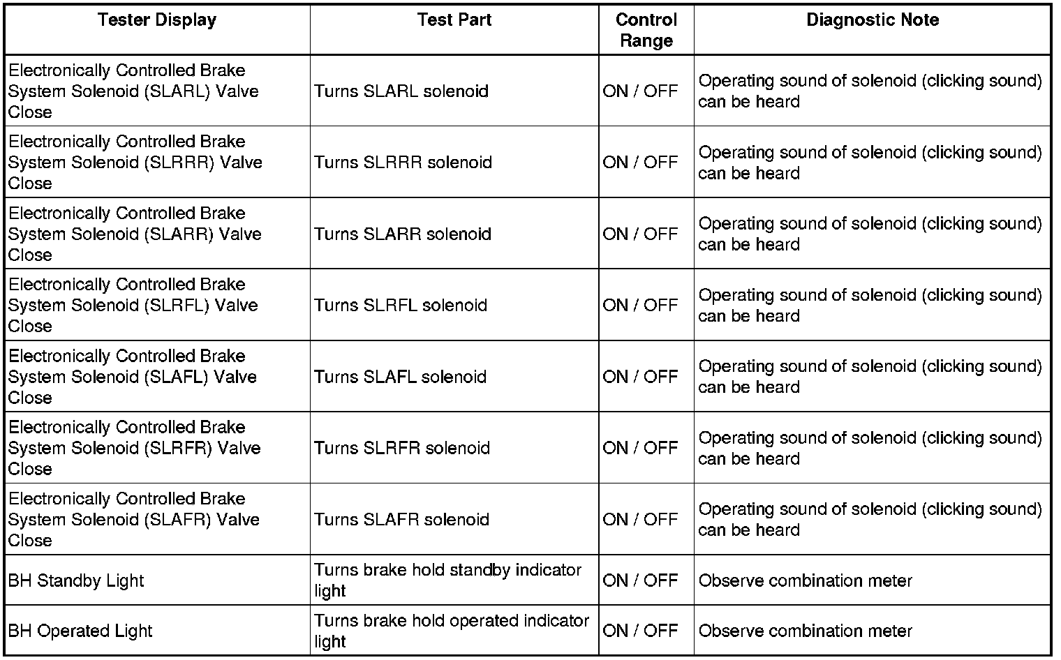 - Do not drive 2 or more solenoids simultaneously except to operate the pressure holding solenoid valves and pressure reduction solenoid valves of each wheel.