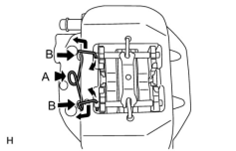 (a) While pressing the area labeled A, push the hole pin (labeled B) toward the brake caliper, and remove the pin hold clip.