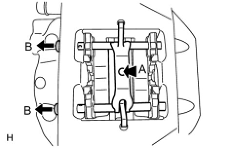 (b) While pressing the area labeled A, remove the 2 rear disc brake anti-rattles with hole pins (labeled B).
