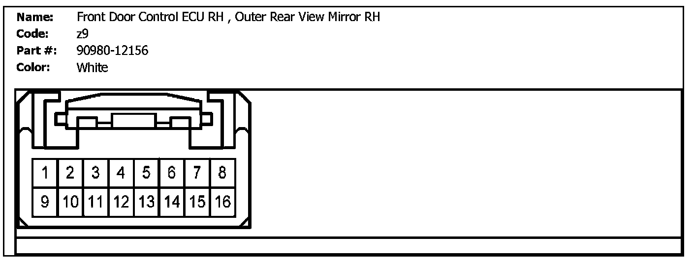 z9 (Front Door Control ECU RH, Outer Rear View Mirror RH):
