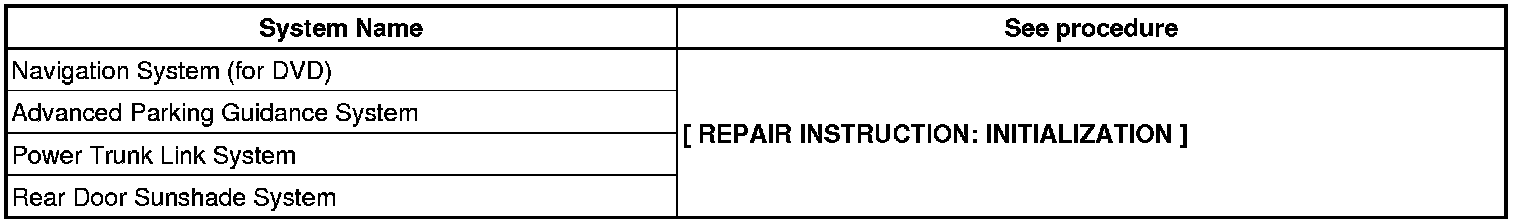 NOTE: When disconnecting the cable from the negative (-) battery terminal, initialize the following systems after the cable is reconnected.