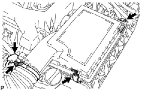 (b) Remove the 2 clamps, loosen the hose clamp and remove the air cleaner cap RH.