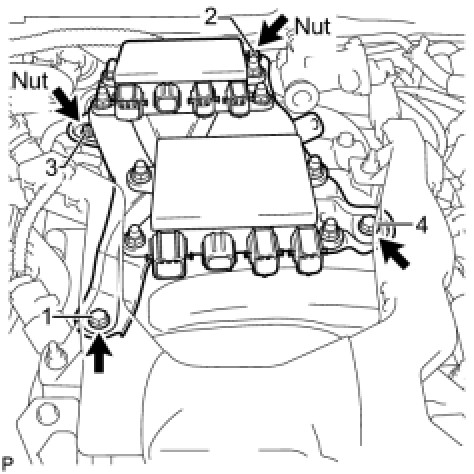 (c) Tighten the 2 bolts and 2 nuts in the order shown in the illustration.
