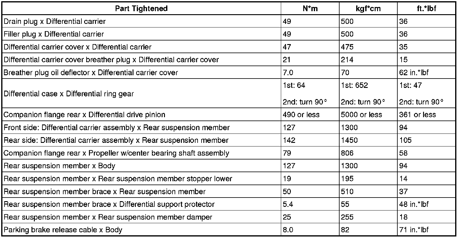 SERVICE SPECIFICATIONS: DIFFERENTIAL: TORQUE SPECIFICATIONS