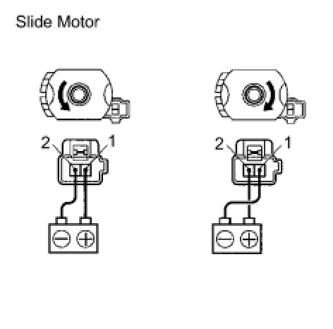 (1) Check the motor rotation when the battery is connected to the slide motor connector terminals.