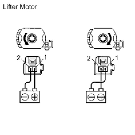(1) Check the motor rotation when the battery is connected to the lifter motor connector terminals.