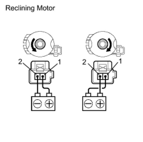 (1) Check the motor rotation when the battery is connected to the reclining motor connector terminals.