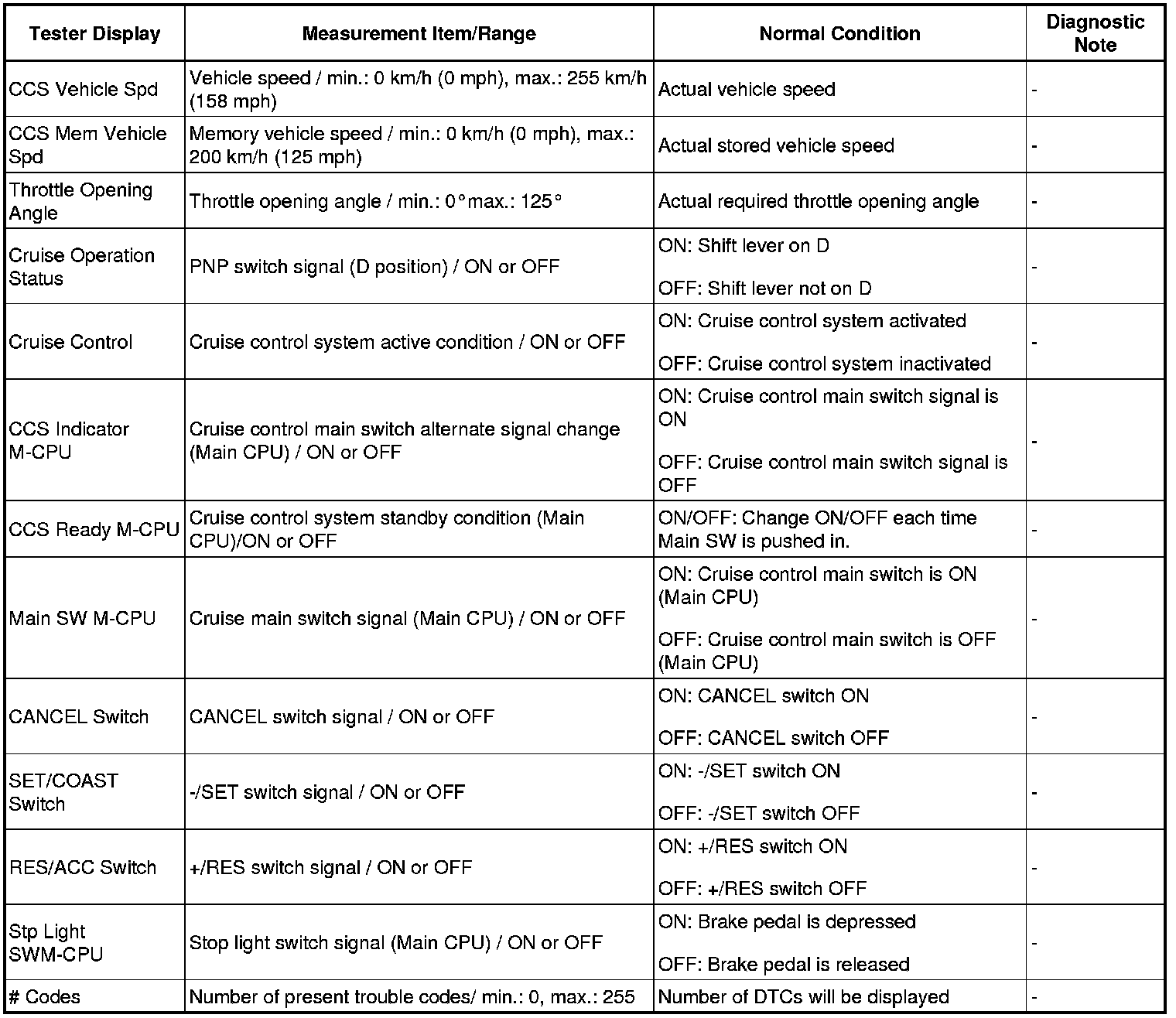 CRUISE CONTROL SYSTEM: DATA LIST / ACTIVE TEST