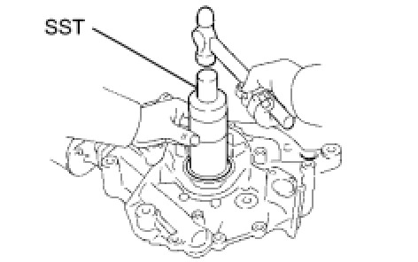 (a) Using SST and a hammer, tap in a new oil seal until its surface is flush with the oil pump body edge.