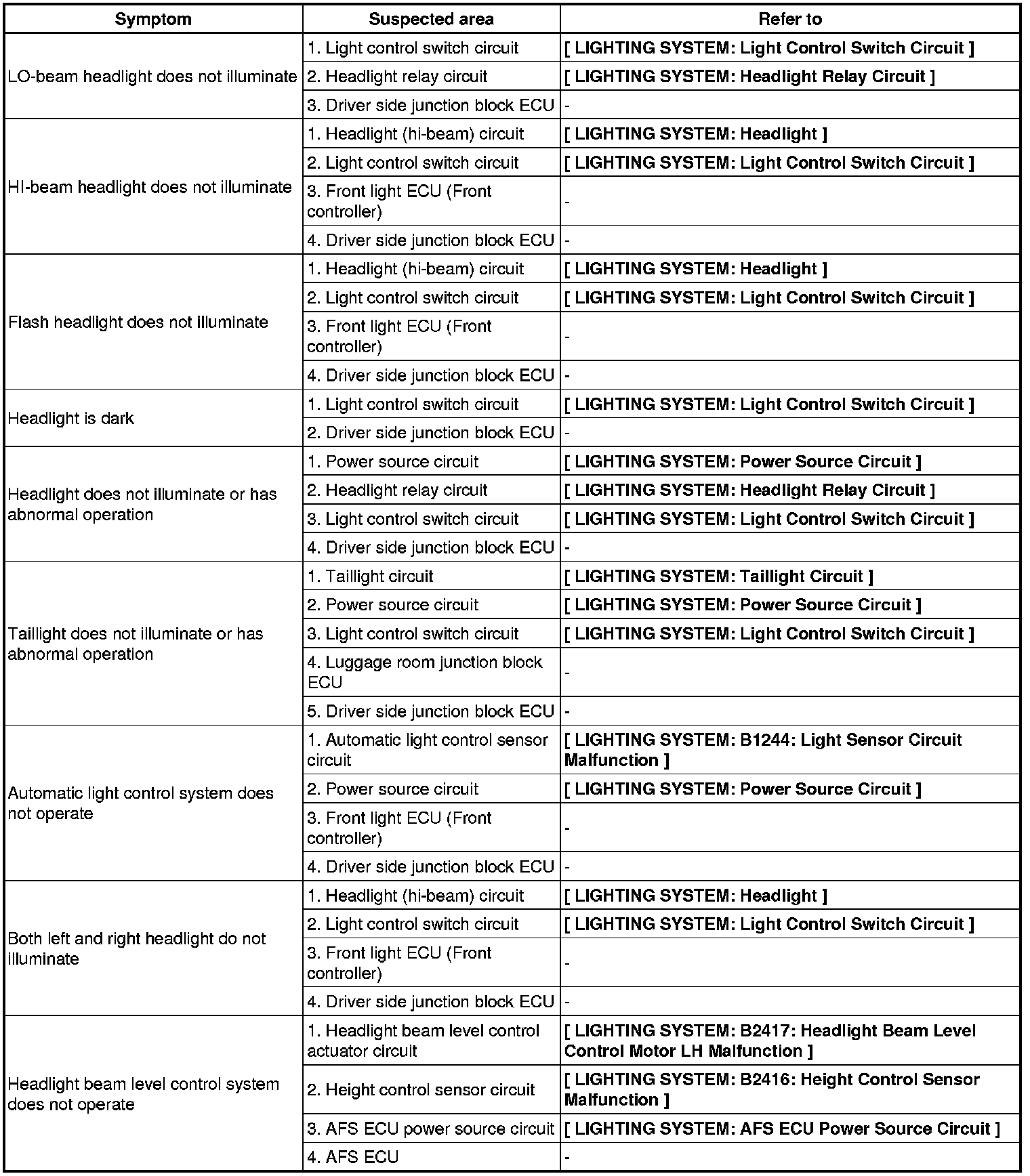HINT: Use the table below to help determine the cause of the problem symptom. The potential causes of the symptoms are listed in order of probability in the "Suspected area" column of the table. Check each symptom by checking the suspected areas in the order they are listed. Replace parts as necessary.