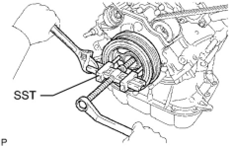 (a) Using SST, remove the pulley bolt.