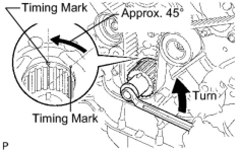 (3) Using the crankshaft pulley bolt, turn the crankshaft counterclockwise by approximately 45°.