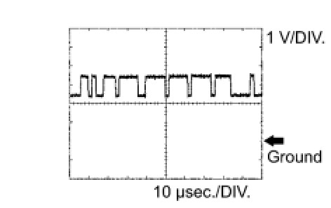 HINT: In cases where the purge VSV can be used to purge the EVAP, the waveform will not be displayed as shown in the illustration. In the Data List, the item Purge VSV shows the duty ratio of voltage flowing to the purge valve.