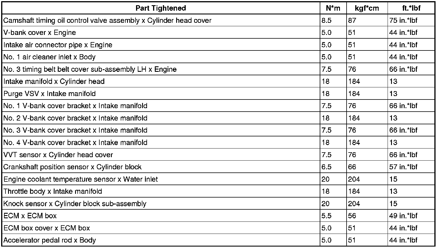 SERVICE SPECIFICATIONS: 3UZ-FE ENGINE CONTROL SYSTEM: TORQUE SPECIFICATIONS