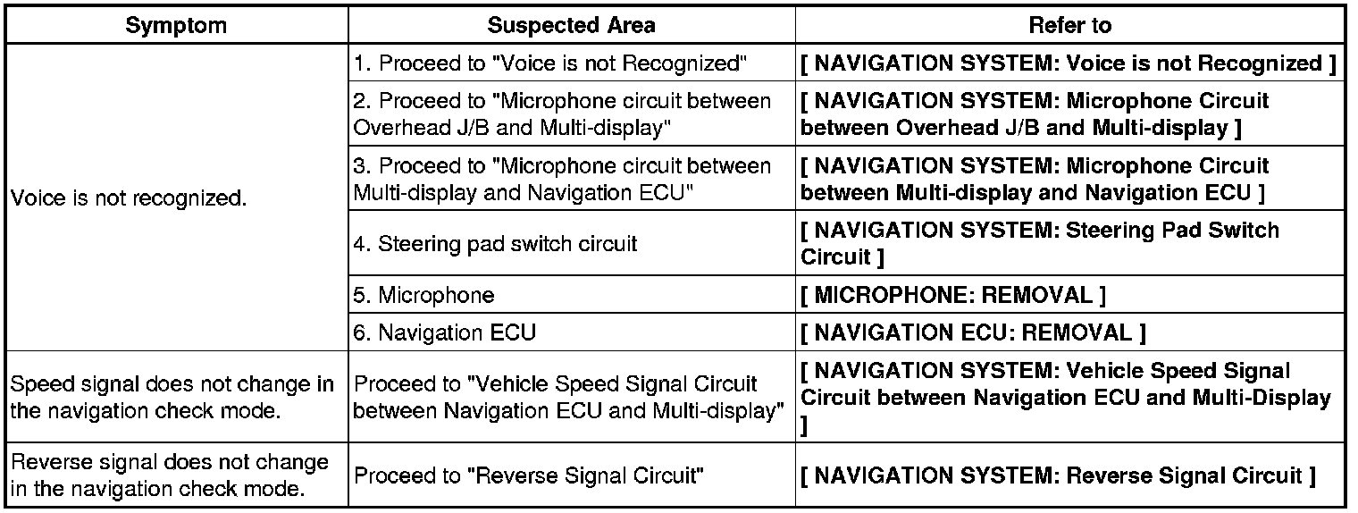 - Before inspecting the suspected areas listed in the table below, check the DTCs.