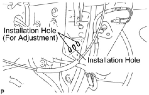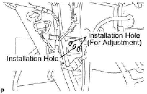 (a) Set the tip of the luggage door hinge torsion bar LH in the installation hole placed in the center part. Holes placed in the upper and lower parts are used for adjustment.