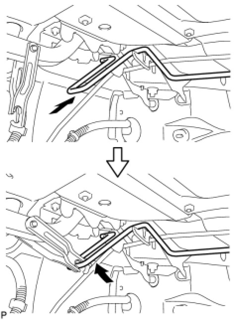 (b) Connect the luggage door hinge torsion bar RH to the luggage door hinge and body LH side as shown in the illustration.